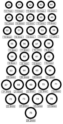 Si votre articulation mesure 56mm et votre phalange 54mm, prenez la mesure la plus grande donc 56mm.